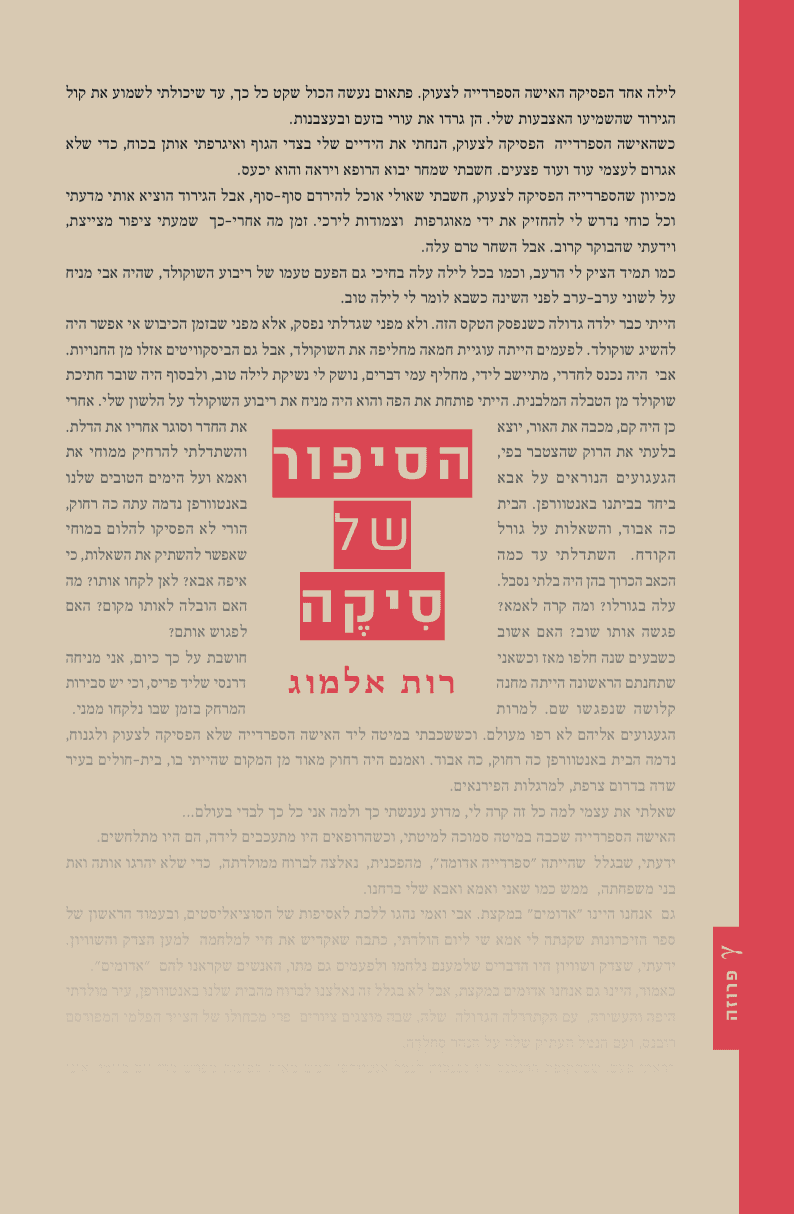 ביד אמן מגוללת רות אלמוג את סיפורה האמיתי של הילדה סיקה, היא אביבה שרון. שרון, בת למשפחה יהודית בלגית, ניצלה בעור שיניה מן הגורל שזימן לה המשטר הנאצי. אלמוג שוזרת בין מכתבים אמיתיים שכתבה לסיקה חברתה הטובה סטפי, לעלילת המרדף וההצלה.